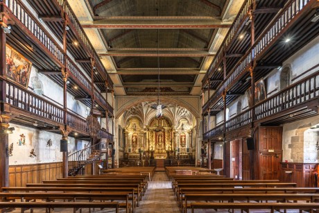 Destacada por su campanario con un inusual techo octogonal, la iglesia dedicada a San Vicente de Huesca, construida en la segunda parte del siglo XVI, simboliza el primer paso hacia la independencia (1603) de la ciudad. Ampliada hasta alcanzar sus dimensiones actuales a finales del siglo XVII, la iglesia ofrece un bello ejemplo de arquitectura religiosa labortina con su nave única formada por tres plantas de galerías que conducen a un coro elevado. Este último destacado por un retablo barroco dedicado a Nuestra Señora de la Paz, que adornaba hasta la Revolución la capilla del convento de los Récollets. Mientras que la plaza principal, hoy pavimentada con antiguas lápidas, albergaba el antiguo cementerio, en el lado norte, un segundo cementerio estaba reservado a los bohemios y los kaskarots. Adosada a la iglesia se encuentra la vivienda de la benoîte, conocida como la benoterie, que recuerda la importancia del papel de las mujeres laicas que tenían a su cargo el mantenimiento del templo y el acompañamiento de las prácticas culturales.